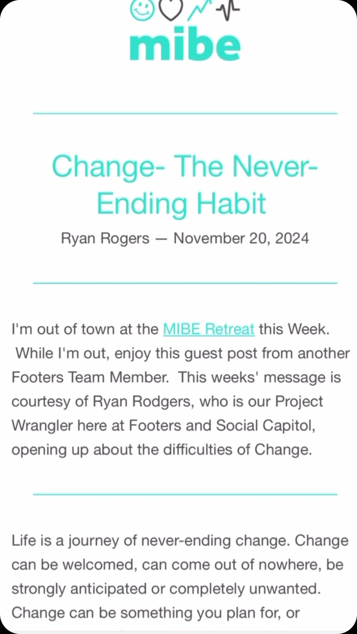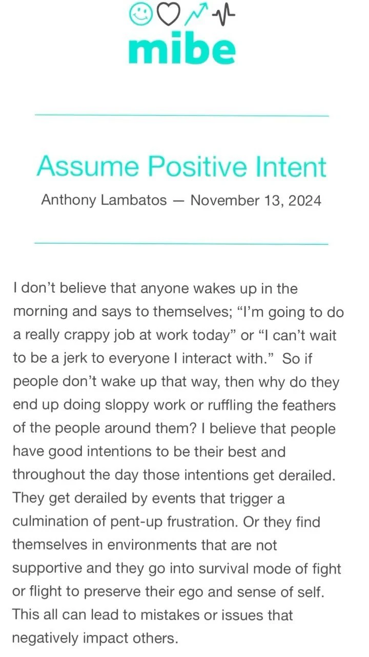 Each week, get inspired by leadership messages from Anthony Lambatos and the MIBE team.