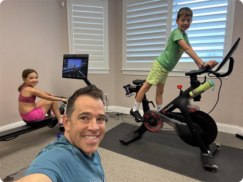 Enjoying a Peloton workout with Adelynn & Ajay